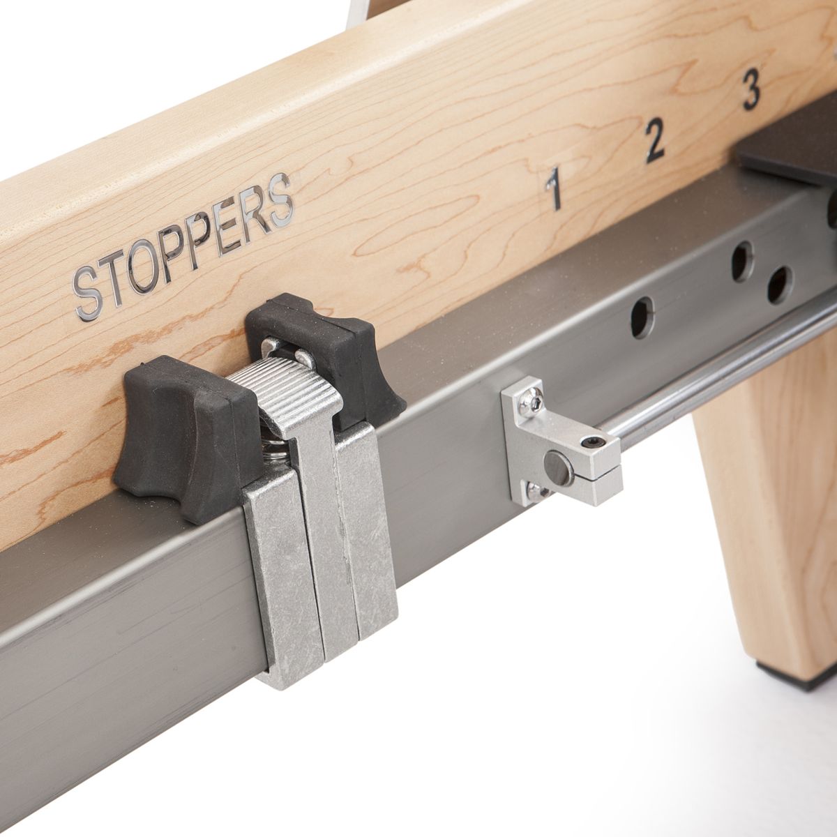 A distinctive feature of the Elite Reformer is its ability to be stacked, very useful for confined spaces. Its revolutionary design incorporates advanced features, such as a quick change of foot bar positions, a spring bar with two heights, and height-adjustable pulleys.