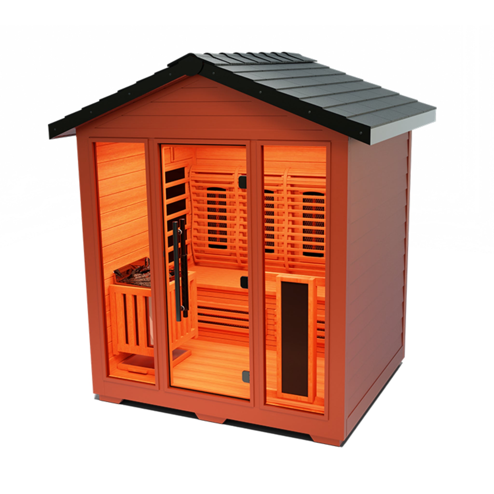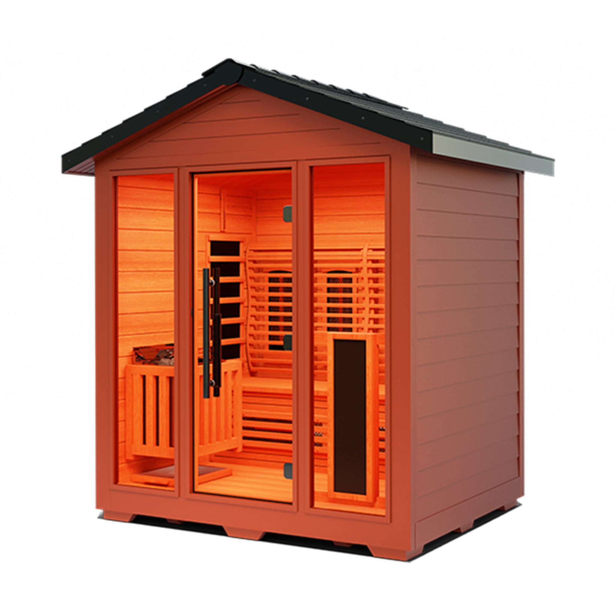 Combines ultra full spectrum infrared heaters with a traditional sauna stove, offering one of the industry's first true outdoor hybrid sauna experiences.